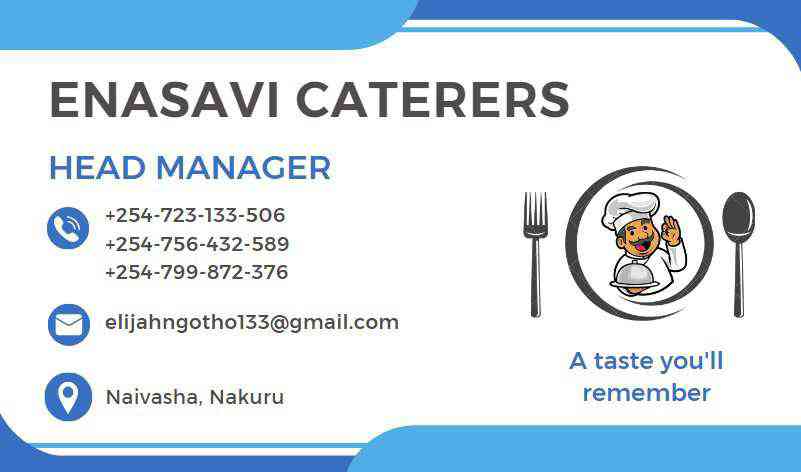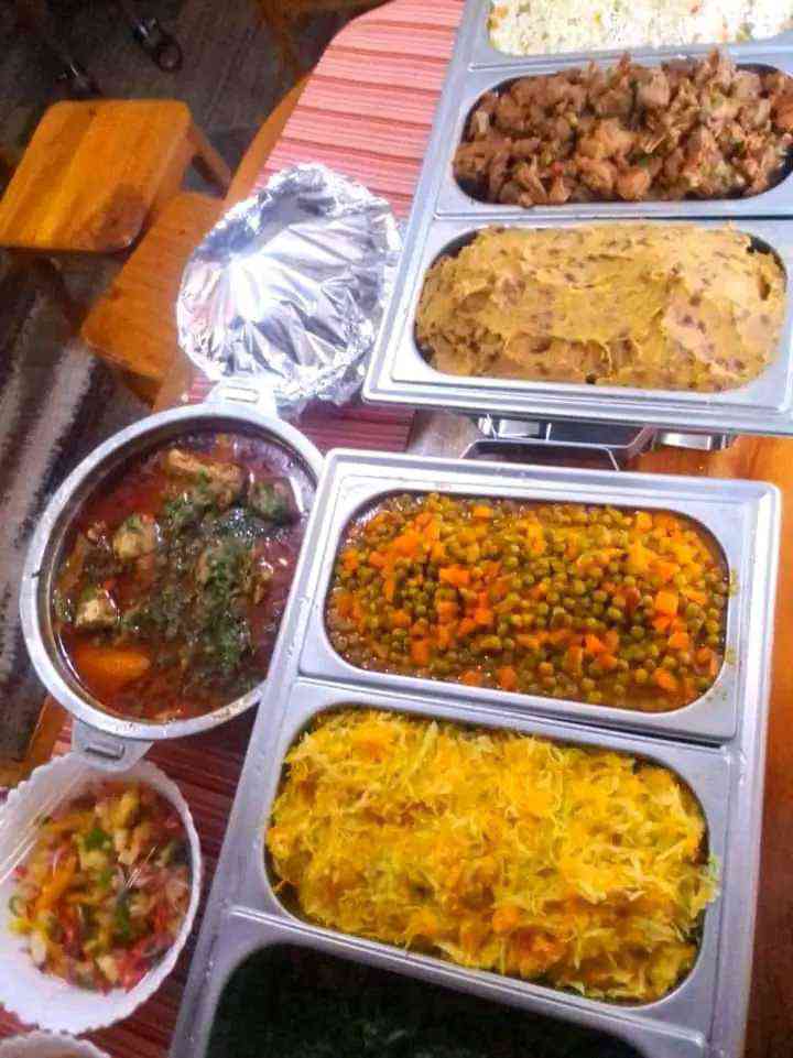 We're ENASAVI CATERERS we give services interms of cooking delicious meal, transportation to the point of the event ,we give our clients a respectful serving, we also accommodate kitchens utensils, service tents in order of our meals to be saved respectful