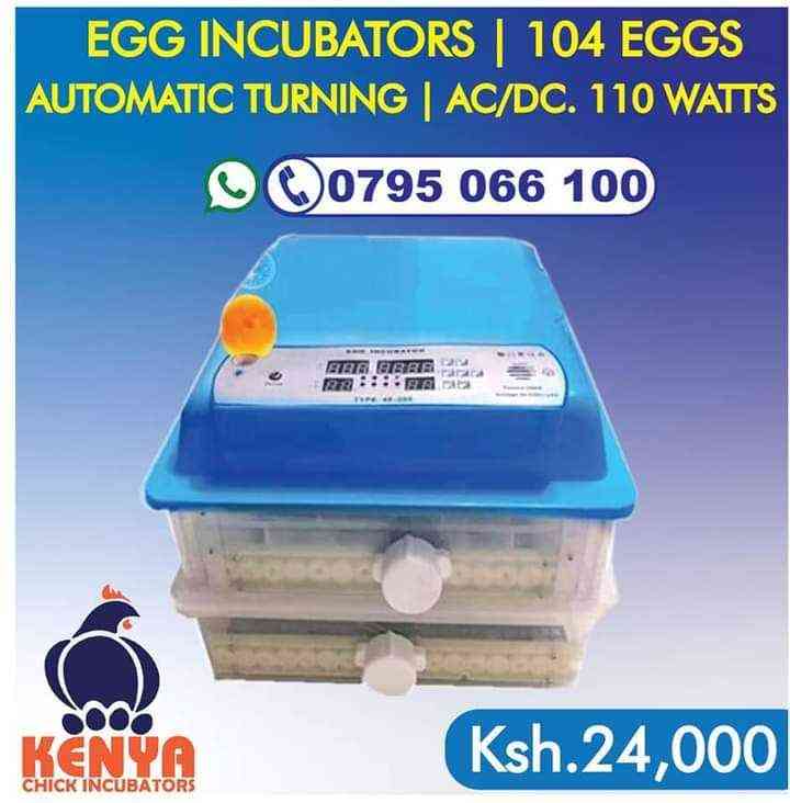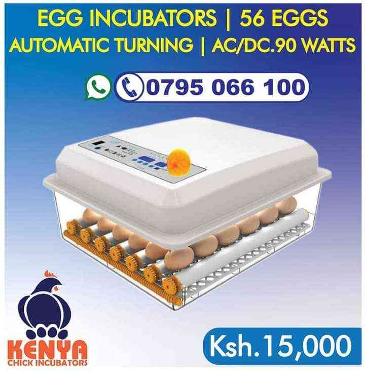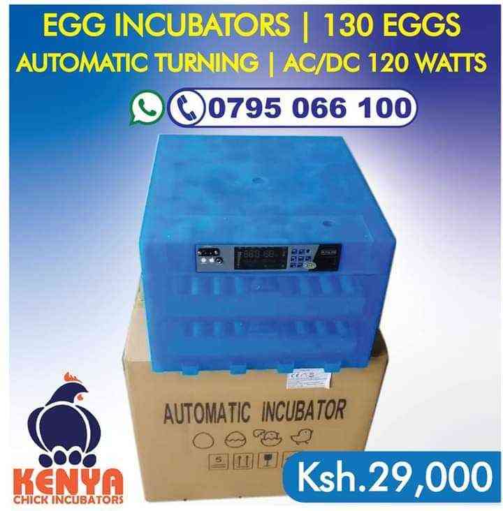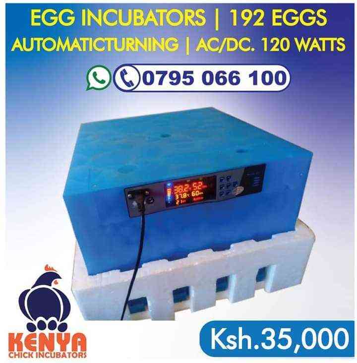 0795066100 -AC/DC- uses any power i.e solar/battery,electricity and generator -it hatches chick,quail,ducks,pegeon,goose,turkey etc -Automatic roller turning system to 360° hence high performance rate over 95% -Automatic controller panel that regulates temperature and humidity according to environment -Automatic alarming when something goes wrong -egg candler/scanner for checking spoiled egg 1 year warrant anything damaged we are the one concerned. Delivery done country wide ,pay after delivery