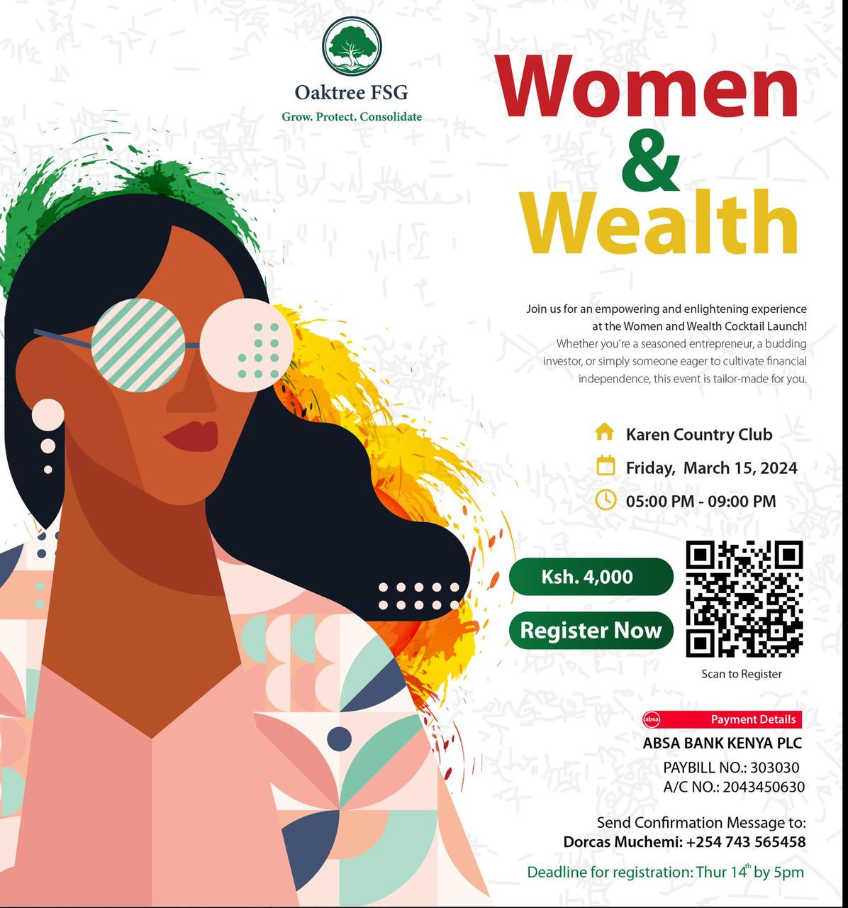 Purpose to attend the inaugural Women & Wealth Cocktail launch to be held at the Karen Country Club from 5-9pm this Friday 15th March 2024.